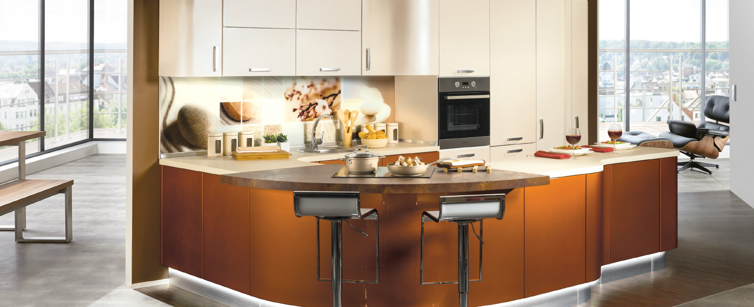 С Moderano вие гарантирано ще създадете кухня, която напълно отговаря на вашите идеи. Позволете си да се вдъхновите от отличната изработка и високата устойчивост на кухните Moderano. В зависимост от размера на стаята има различни кухненски форми. U-образна или островна кухня е идеална за по-големи помещения и осигурява достатъчно работно пространство.