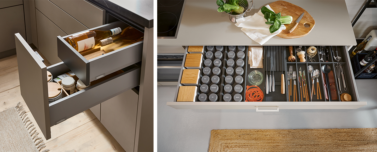 Интелигентно съхранение: Изключително разнообразие от механизми, аксесоари и органайзери OrganiQ за перфектна подредба на вътрешните пространства.