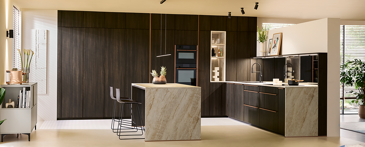 Кухни Varina от NOVEL предлагат пълна свобода при избора на текстури, вдъхновени от природата, за да постигнете висок клас дизайн във всяко кътче. Преобразете дома си с помощта на нашите проектанти и открийте перфектния баланс между естетика и функционалност.