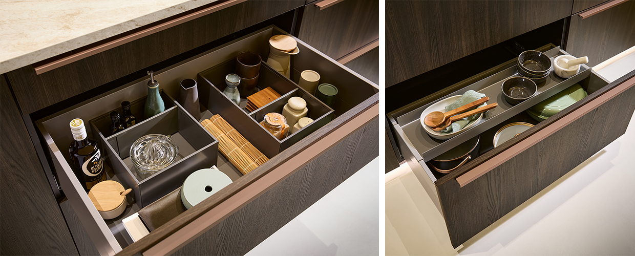 Функционален ред: Разнообразие от органайзери за чекмеджета, които осигуряват перфектна подредба и лесен достъп.