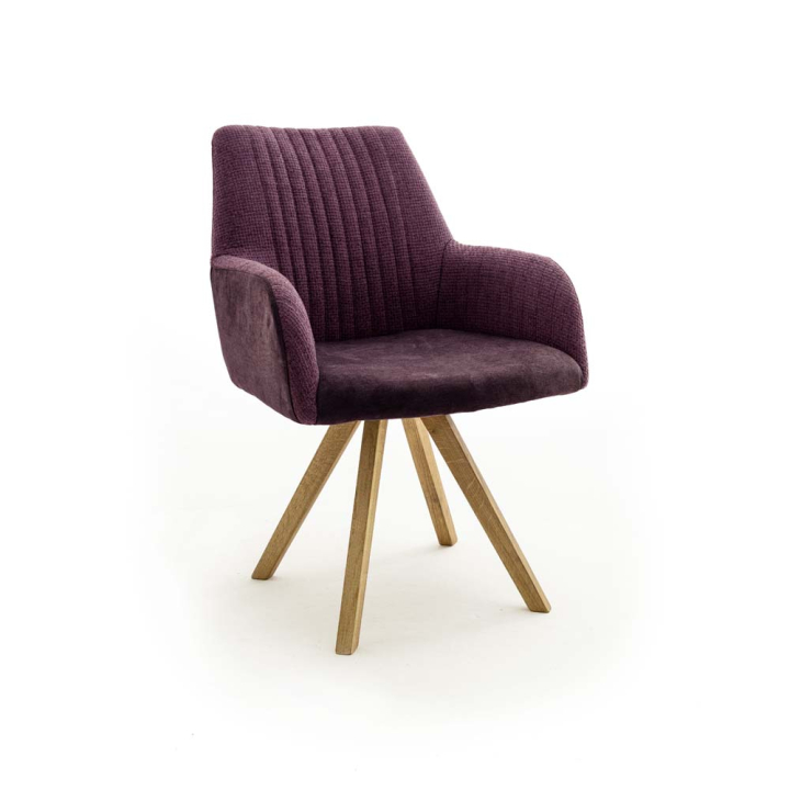 Тапициран трапезен стол с подлакътници с размери Ш:59/Д:61/В:87 см. Облегалката на модела стилно се слива със седалката и подлакътниците, като образува удобен стол тапициран с висококачествен текстил с пълнеж от пяна за максимален комфорт по време на седене. Дамаската на облегалката е с релефен текстил на дълги ивици в червен цвят (бордо), а седалката с гладка повърхност приятна на допир. Според личните ви предпочитания може да изберете друг цвят на тапицерията (кафяв или сив). Седалката е поставена на 4 дървени крака в светъл дървесен декор, обединени в най-горната си част. Артикулът има красива визия и дизайн който, впечатлява, подходящо обзавеждане, както за трапезарията, така и за хола. Със своите цветове и форма, моделът със сигурност ще допринесе за приятната и заредена с положителна енергия атмосфера в помещението.