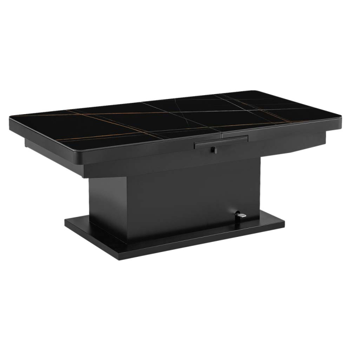 Произведена с метална основа в черен цвят и плот изработен от керамика с рамка от МДФ, практично решение, което би било подходящото допълнение за вашето холно помещение.