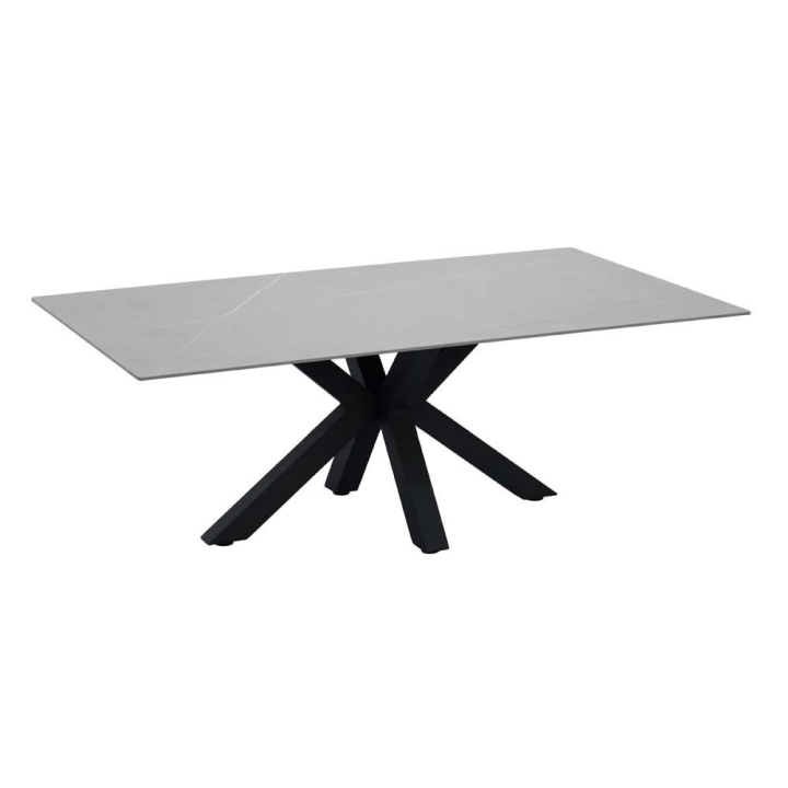 Масата е произведена с крамичен плот в сив цвят, с максимална товароносимост - 30 кг, в съчетание с 4 черни метални крачета, придаващи разчупен цялостен облик.