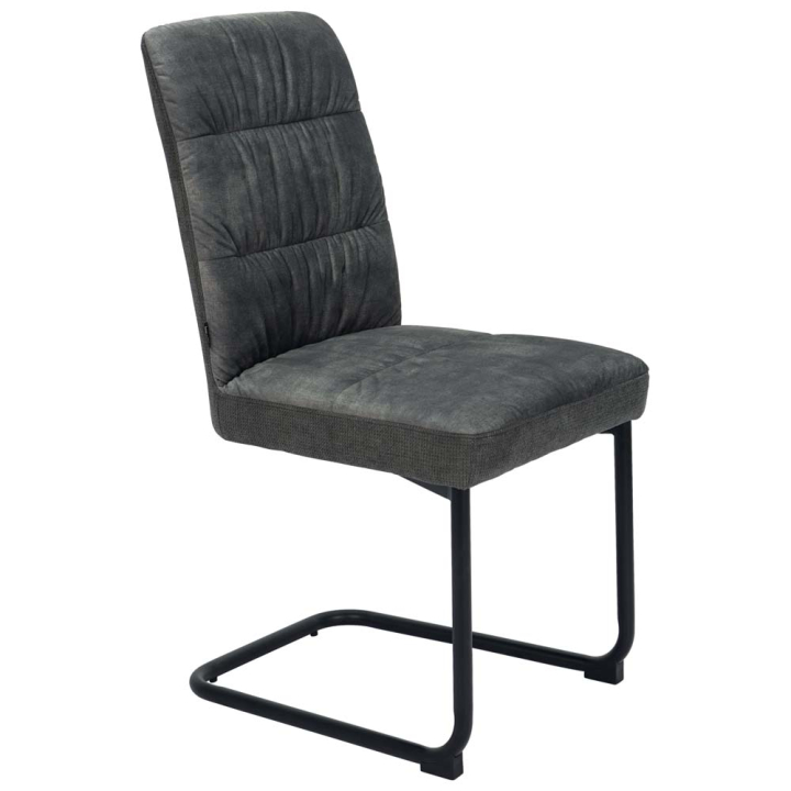 Тапициран трапезен стол с размери Ш:46/Д:91/В:93 см. Моделът притежава изключителен дизайн, като същевременно предоставя завиден комфорт по време на седене. Дамаската е произведена от тъкан текстил, 100% полиестер в сив цвят, изключително приятна на допир, с пълнеж от висококачествена пяна. Облегалка е стилно набрана с оформени две хоризонтални линии, посредством шевове. Стилът, в който е изработен стола е на домашен уют и подчертан висок стандарт на живот. Седалката е поставена на черна матова метална рамка с протектори щадящи пода с максимална товароносимост до 140 кг. Трапезният стол ще ви предостави така нужния комфорт по време на дългите и приятни закуски, обеди и вечери с любими хора и приятели.