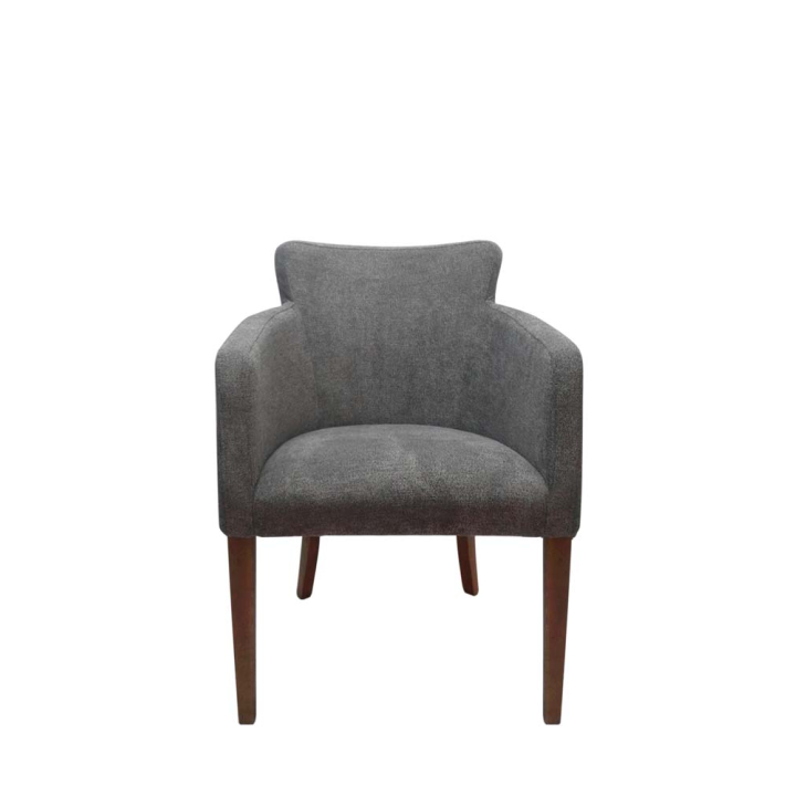 Трапезен стол с размери Ш:57/Д:58/В:78 см. Модел с тапицирана седалка и облегалка, както и високи подлакътници. Веднага ще ви направи впечатление обемната седалка, която е много комфортна, поставена на 4 крака в тъмна дървесна текстура. Отличава се със специфичен дизайн, който със сигурност няма да остане незабелязан.