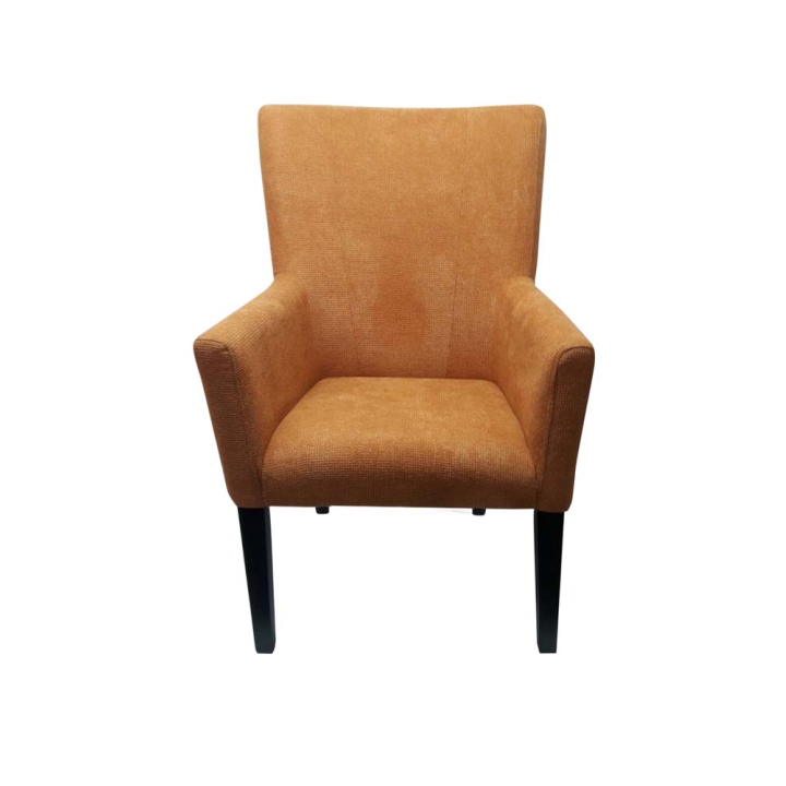Това изискано кресло съчетава стилен дизайн и изключителен комфорт, предлагайки перфектен завършек за всяко помещение. Стабилната рамка от масивна букова дървесина гарантира здравина и устойчивост, докато седалката, облегалката и подлакътниците с пълнеж от висококачествена полиуретанова пяна осигуряват удобство и релаксация. Тапицерията е изработена от текстил с красива текстура в оранжев цвят.