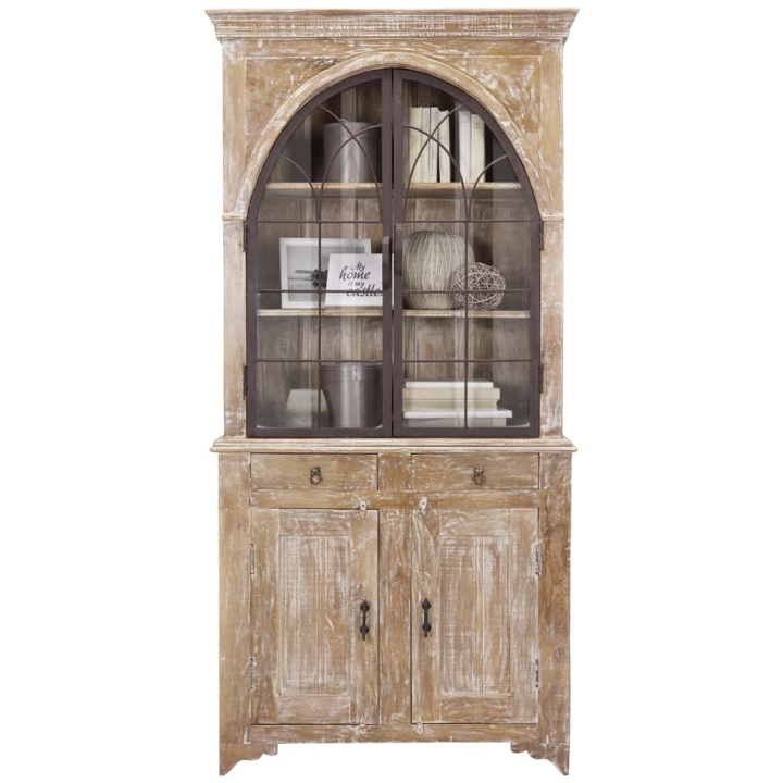 Красив и стилен висок бюфет със стъклена витрина в горната част.
