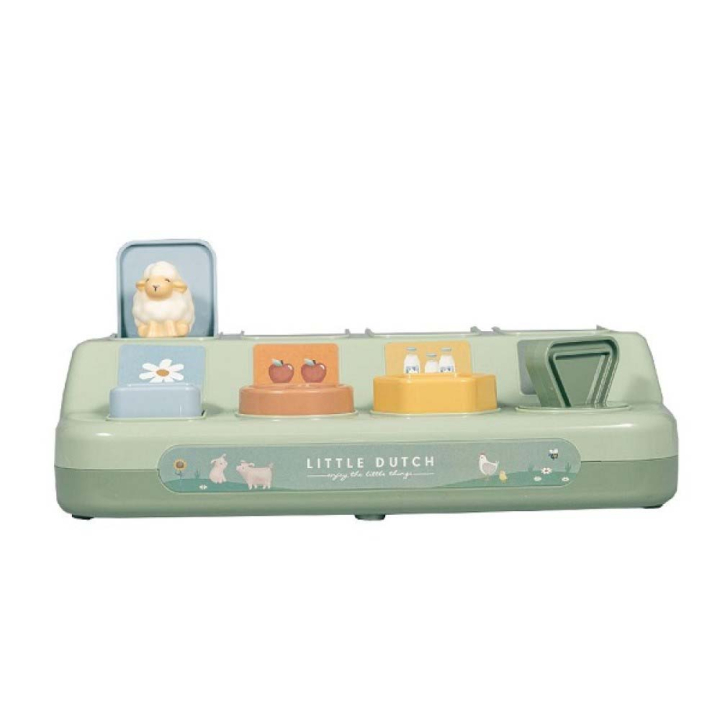 Кое селскостопанско животно се появява, когато натиснете копчетата – овца, прасе, крава или пиле? Тази семпла игра доставя на детето много удоволствие. Докато открива и опознава различните селскостопански животни, то развива фината си моторика по игрив и забавен начин.