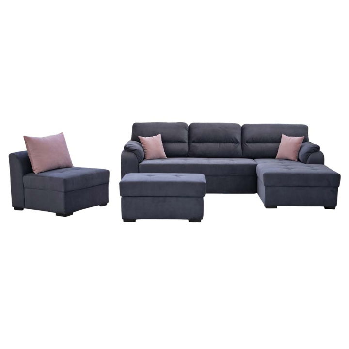 Опциите, които предлага диванът са: функция сън с механизъм за издърпване и площ 132/185 см, с обособена ракла за съхранение на завивки, както и табуретка-ракла, която ще ви предостави допълнителна полезна площ.
