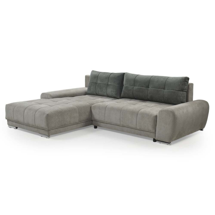 Бежово-сива ъглова холна гарнитура Шери с лява лежанка, функция сън с площ: 140/207 см и включени декоративни възглавници, размери: 273/191/83 см