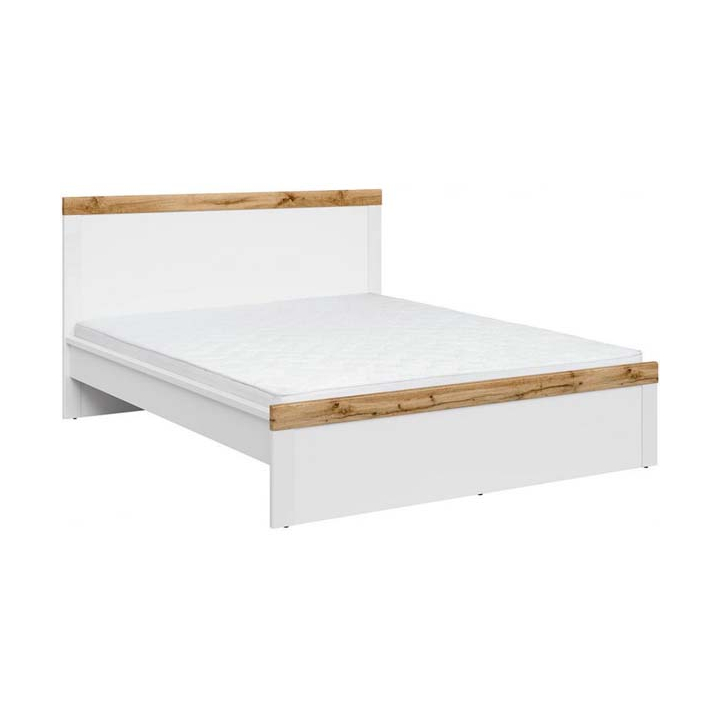 Модерно легло с размери Ш:169/Д:204.5/В:100.5 см. Конструкцията е произведена с горна и долна табла за матрак два персона 160/200 см. За изработката е използвано висококачествено ламинирано ПДЧ в бял цвят. Матракът и подматрачната рамка трябва да закупите отделно според личните ви предпочитания за комфорт и удобство. Бялото покритие е преобладаващо, като само горната част на таблите са в дървесна текстура. Детайл, който ще вдъхне живот към помещението. Репродукцията на дъба в светли нюанси, добавя не само разнообразие в дизайна, но и много положителна енергия, емоция, топлина и уют към интериора. Леглото е с опростена конструкция с лесен и бърз монтаж, само следвайте инструкцията. С допълнителна поръчка може да добавите чекмедже за практичното съхранение на дрехи, одеяла и завивки в спалнята под матрака.