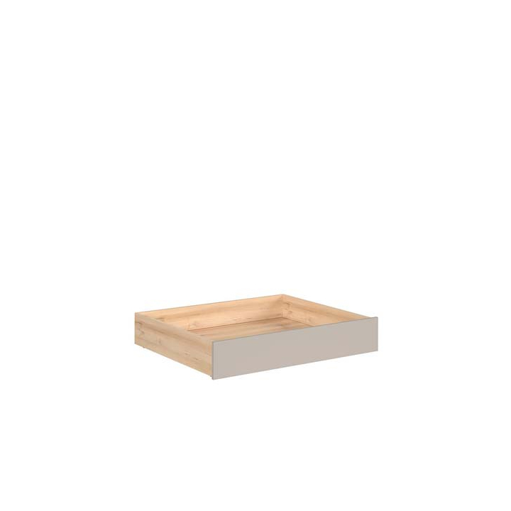 Чекмедже с размери Ш:79.5/Д:98/В:17 см. Предназначено е за поставяне под легло с размери Ш:95/Д:204.5/В:80.5 см, за матрак 90/200 см, като по този начин бързо и лесно ще добавите още пространство за съхранение на дрехи, одеяла, спално бельо и др. в детската стая. Фронтът на чекмеджето е в неутрален сив цвят, а конструкцията в светъл дървесен декор.