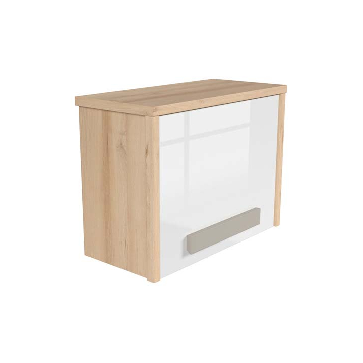 Шкаф за стенен монтаж с размери Ш:60/Д:29.5/В:45.5 см. Притежава красива визия и опростена конструкция, подходящо обзавеждане за повечето детски стаи. Корпусът е декорирани в светъл дървесен декор, а вратата в бял гланц с монтирана сив дръжка. Отличава се с визия създаваща привлекателна младежка атмосфера. Шкафът е произведено от ПДЧ, репродукция на светъл бук, красива текстура заредена с вътрешна топлина. Моделът е част от серия мебели за обзавеждане на детска стая Намек с включени легло, двуетажно легло, гардероб, нощно шкафче, бюро, комод, полица и др. Мебелите са създадени с любов и визия за обособяване на перфектната детска стая.