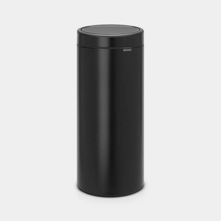 Капакът е изключително безшумен, отварящ се мигновено само с леко докосване, без да полагате никакви усилия. Стабилната пластмасова основа осигурява плътно прилягане към пода, без оставяне на следи, без надраскване на пода и без хлъзгане встрани. Модулът с капака и отварящият механизъм се свалят бързо с цел лесна подмяна на торбите за смет и почистване на вътрешната кофа. Вадещата се вътрешна пластмасова кофа е с вентилационни отвори, които предотвратяват създаването на вакуум при отделяне на пълните торбички със смет. Вложените материали са висококачествени и неподатливи към корозия. Удобна и дискретна дръжка за лесно местене и пренасяне на целия кош, дори и ако е пълен. В комплект е добавена малка мострена ролка торби за смет с връзки Brabantia PerfectFit (размер G) – за лесно поставяне и без стърчащи краища на торбата.