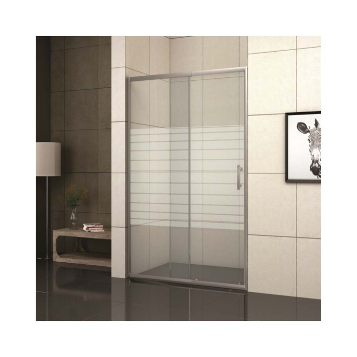Стъклен параван с плъзгаща се врата 140-160/190 см. Удачно и икономично решение за разделяне на банята на сухо и мокро помещение, без сериозни реконструкции. Лесно може да бъде монтиран между две стени в душ зоната в диапазона от 140 до 160 см. Моделът притежава стабилна конструкция от компенсаторни профили, плъзгаща се врата, рисувано стъкло с бели ивици, което деликатно ще запази личното ви пространство докато се наслаждавате на топлия душ.