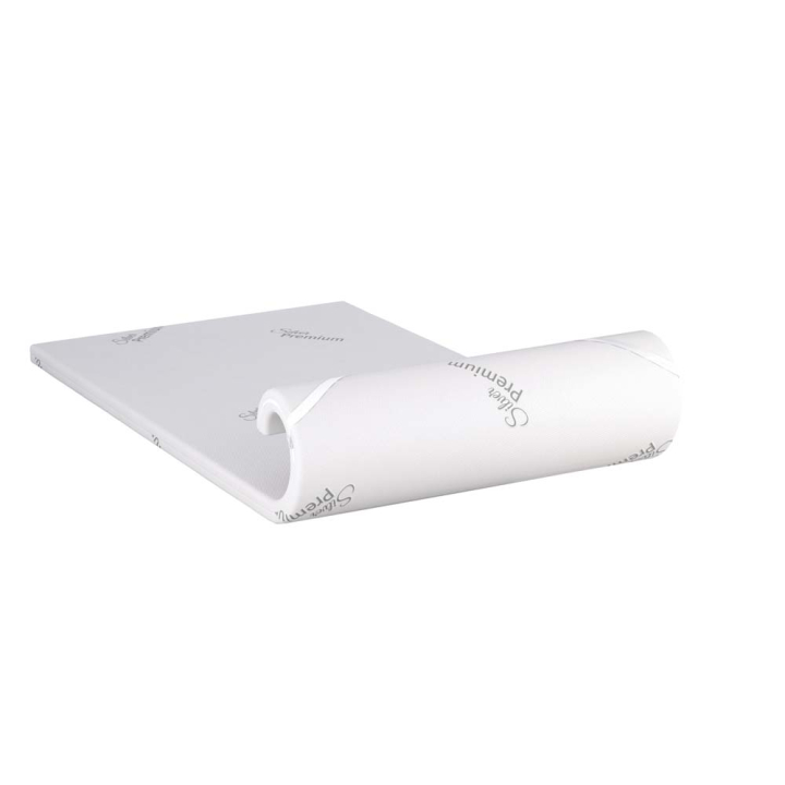 - Ядро от 100 % мемори пяна, която се адаптира към контурите на тялото, намалява напрежението и осигурява опора сигурна опора. Подобрява комфорта при стар матрак или диван.