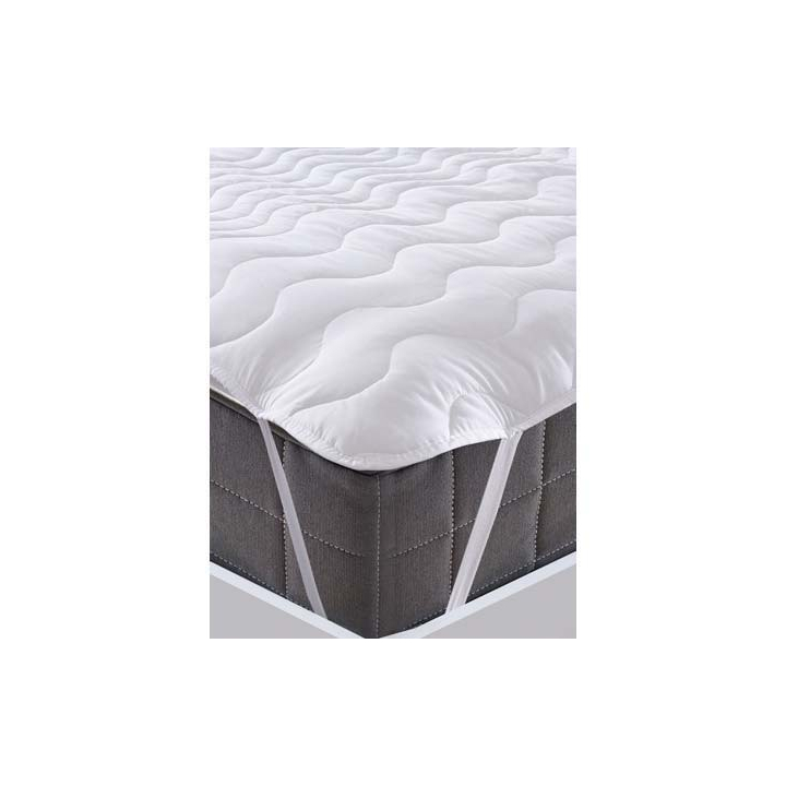 - обхваща цялата лицева повърхност на матрака посредством еластични ленти в 4-те края;