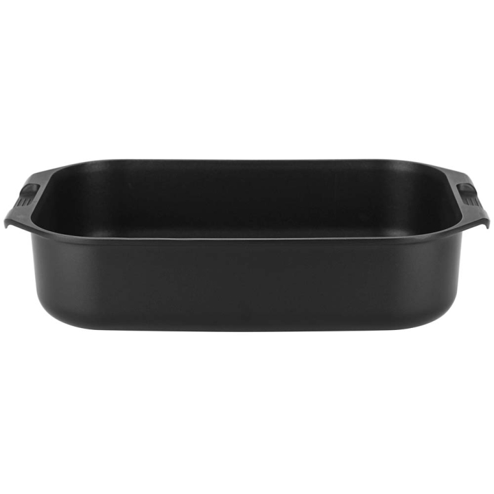 Черна алуминиева тава с термоустойчив стъклен капак с отвор и дръжка за овкусяване, 40/25 см, 2.5 л
