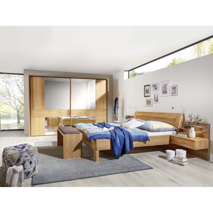 Спалният комплект е създаден, за да внесе уют и стил във вашия дом, съчетавайки изискан дизайн с практичност. Всички мебели са изработени от висококачествен масив дъб, което гарантира тяхната здравина, дълготрайност и естествена красота. Комплектът осигурява както комфорт за спокоен сън, така и функционални решения за организиране и съхранение на дрехи, лични вещи и аксесоари.