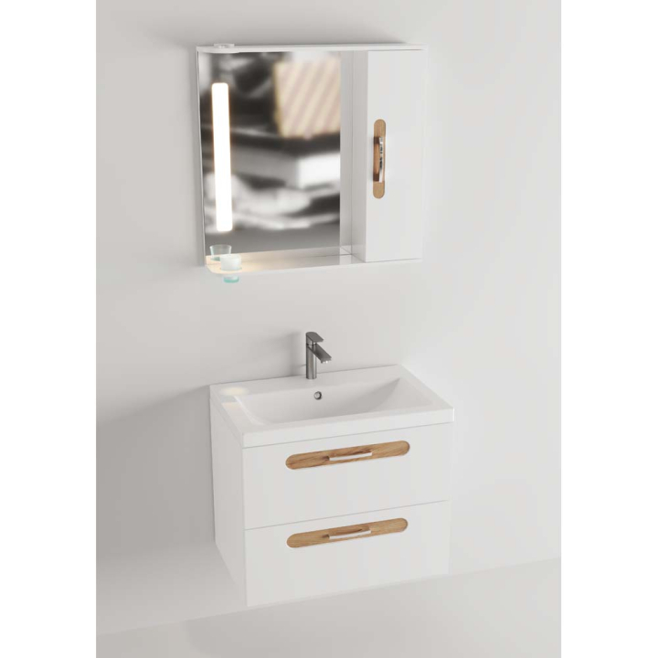 ГОРЕН ШКАФ ЗА БАНЯ ТЕРА С ОГЛЕДАЛО, ПОЛИЦА И LED ОСВЕТЛЕНИЕ 70/15/65 СМ