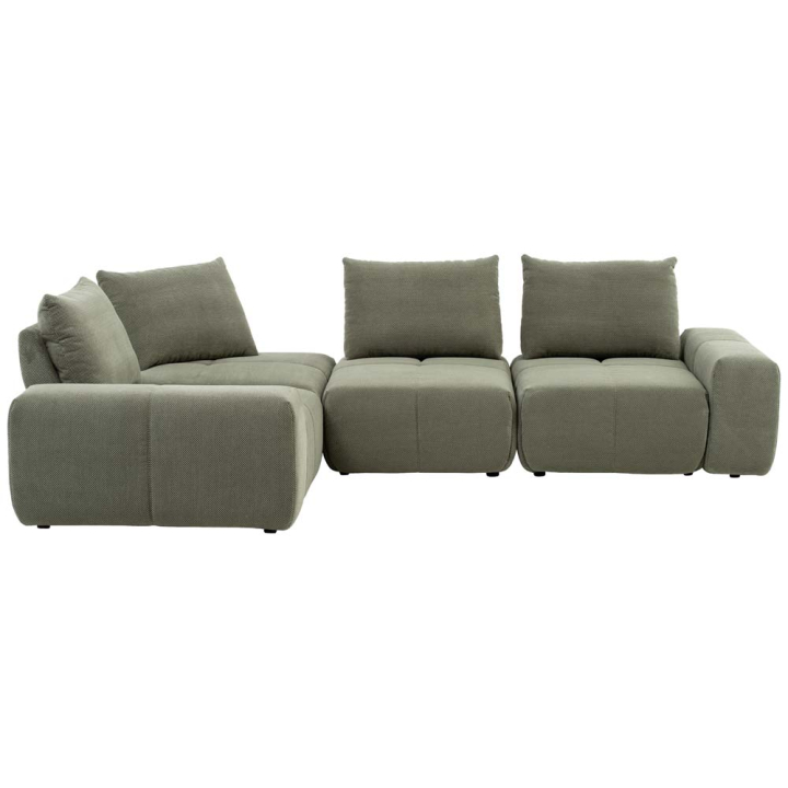 Холна гарнитура - Мая съставена от 4 модула в зелен цвят. Състои се от ляв и десен краен елемент, среден и ъглов елемент. Основата е изградена от иглолистна дървесина и бук. Седалките са дълбоки и обширни, а облегалките обемни и комфортни. Текстилната дамаска е в зелен цвят, а в съчетание със семплата визия и дизайн, тази холна гарнитура умело може да бъде вписана във вашия интериор, допринасяйки с комфорт и уют в помещението. Зеленият цвят се комбинира добре в различни цветови варианти, притежавайки умението да създава връзка с екстериора и заобикалящата среда, което предразполага хармонична обстановка във вашия дом.