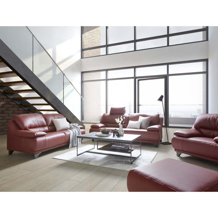 ЧЕРВЕН ТРИМЕСТЕН ДИВАН МОДЕНА В ЕСТЕСТВЕНА КОЖА 218/92/87 СМ