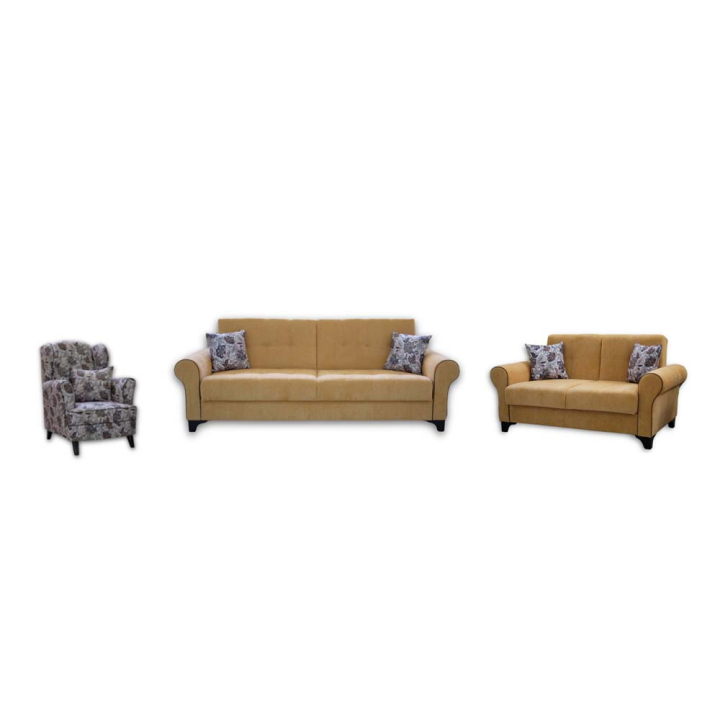 ЖЪЛТ ТРИМЕСТЕН ДИВАН САЛВАТОРЕ С ФУНКЦИЯ СЪН И РАКЛА 232/100/90 СМ