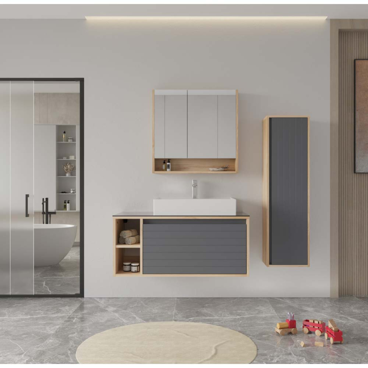 ДОЛЕН ШКАФ С МИВКА ПРАТО 100/49/58 ДЪБ/АНТРАЦИТ