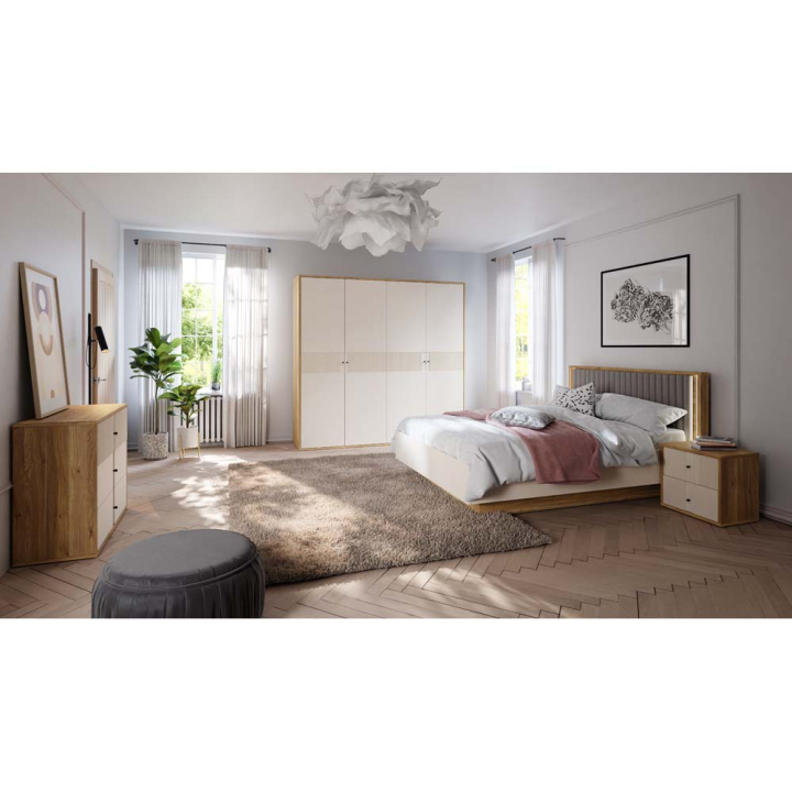 ЛЕГЛО РАНКИН 160/200 СЪС СКАРА, МЕХАНИЗЪМ И LED ОСВЕТЛЕНИЕ 176,6/214/103,7 СМ ДЪБ/КАШМИР
