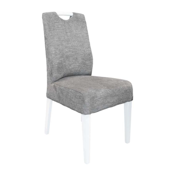 Тапициран трапезен стол с размери Ш:44/Д:59/В:97 см. Със своя дизайн би стоял прекрасно до повечето трапезни маси. Седалката и облегалката са тапицирани с висококачествен текстил с пълнеж от пяна поставени на четири бели крака. Съчетанието между бял цвят и кафяв текстил, създават приятна атмосфера на домашен уют. Съберете цялото семейство, удобно настанени около трапезната маса, за дълги приятни беседи и апетитни закуски, обеди и вечери.
