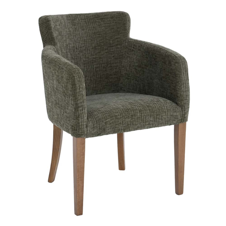 Предлаганият от нас трапезен стол съчетава стил и комфорт, идеален за всяка трапезария или кухня. Изработен от здрава конструкция в цвят тъмен дъб с зелена текстилна дамаска, той ще допринесе с уют и изисканост за вашия дом.