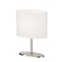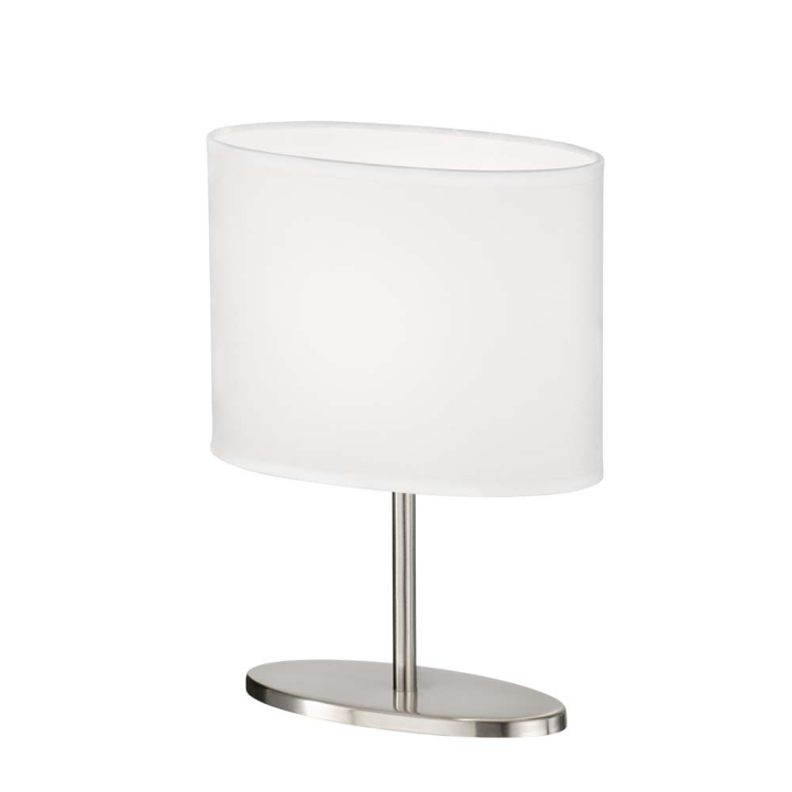 Елегантен настолен осветител, предлагащ изчистена визия и универсален цвят. Адаптира се чудесно в разнообразни интериорни стилове, с предназначение за поставяне върху нощно шкафче или като декоративно осветление на всяко друго място. Абажурът, изработен от ефектен бял плат, придава на светлината приглушеност и създава хармонична, успокояваща обстановка.