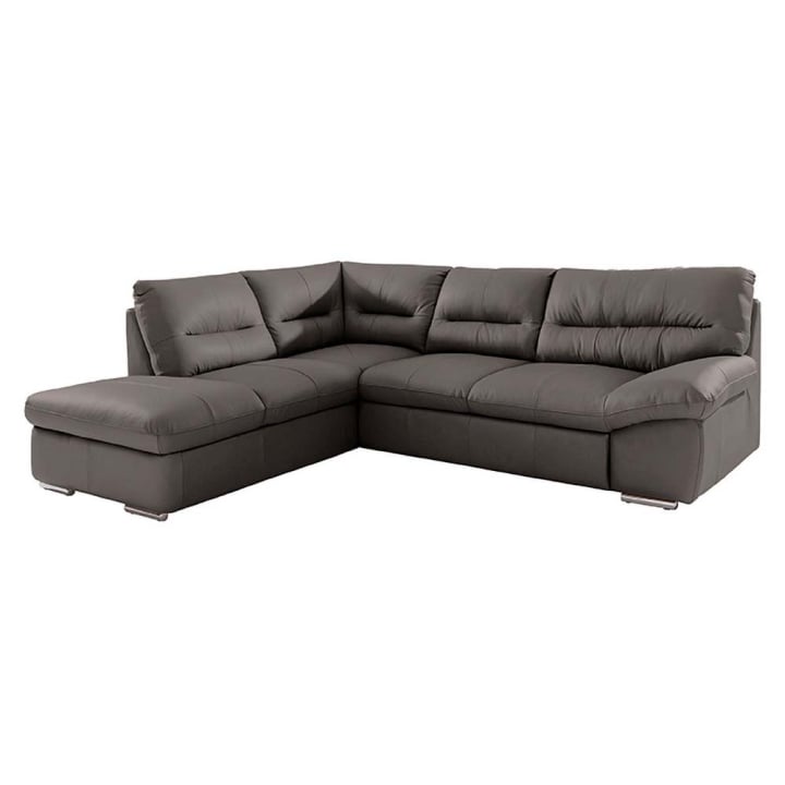 Сива ъглова холна гарнитура Уилям от естествена кожа с лява лежанка, функция сън с площ: 183/123 см и ракла, размери: 216/268/88 см