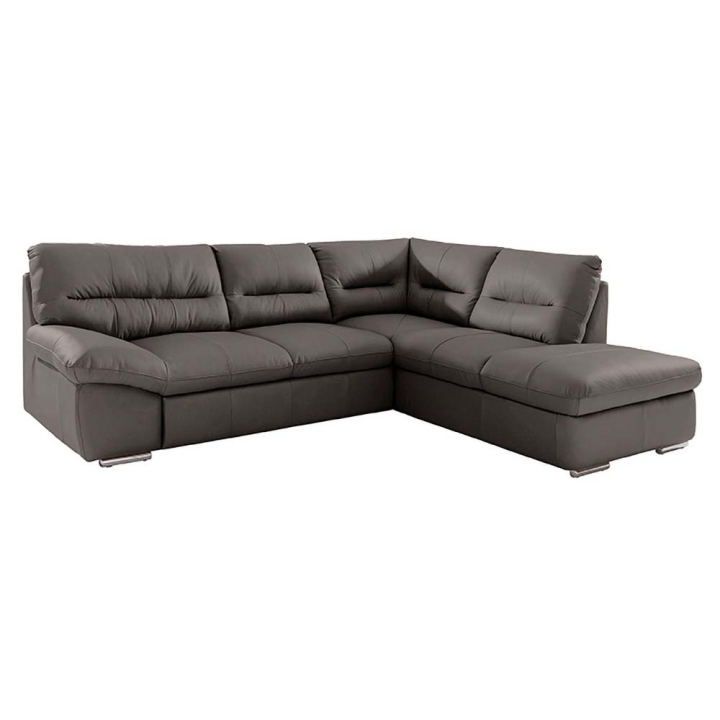 Сива ъглова холна гарнитура Уилям от естествена кожа с дясна лежанка, функция сън с площ: 183/123 см и ракла, размери: 216/268/88 см