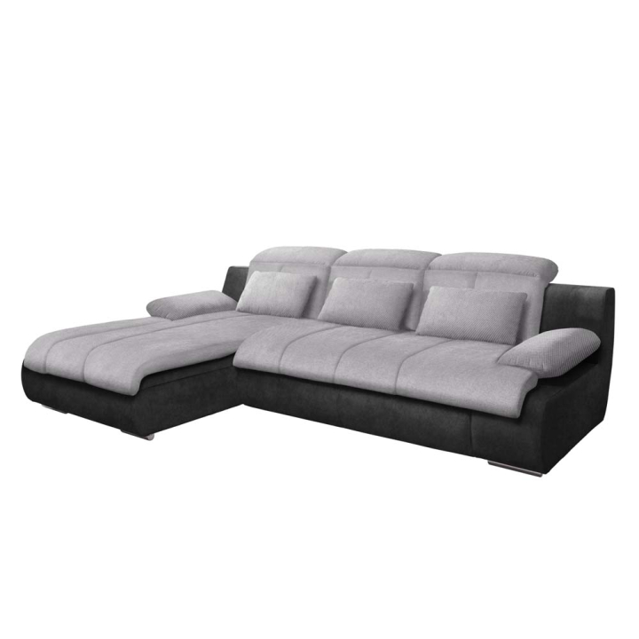 Ъглова холна гарнитура Мулти с лява лежанка, подвижни подглавници и подлакътници, функция сън и ракла в сива и черна дамаска, размери: 260/184/83 см