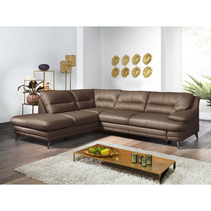 КАФЯВА ЪГЛОВА ХОЛНА ГАРНИТУРА БОЛОНЯ ОТ ЕСТЕСТВЕНА КОЖА С ДЕСЕН ПОДЛАКЪТНИК, ФУНКЦИЯ СЪН И РАКЛА 224/263/87 СМ COTTA 13553018970