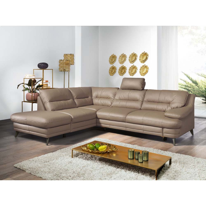 БЕЖОВА ЪГЛОВА ХОЛНА ГАРНИТУРА БОЛОНЯ ОТ ЕСТЕСТВЕНА КОЖА С ДЕСЕН ПОДЛАКЪТНИК, ФУНКЦИЯ СЪН И РАКЛА 224/263/87 СМ COTTA 13553018972