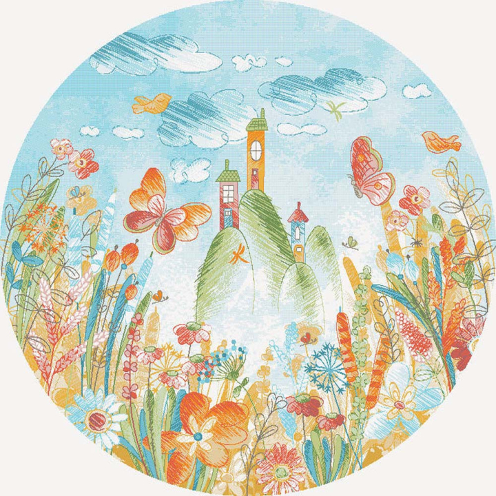 Цветен арт килим в кръгла форма, подходящ за детска стая, диаметър 120 см