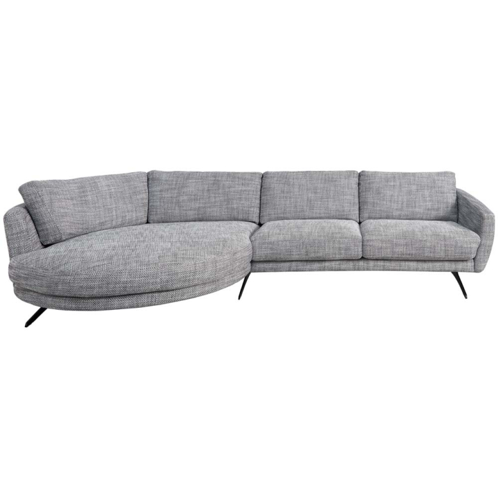 Модерна ъглова холна гарнитура с размери Ш:329/Д:160/В:82 см. Със своите размери предоставя предостатъчно място за четири човека да се настанят удобно пред телевизора.  Идеална е за по-големи помещения или дневни. Притежава някои предимства, които със сигурност ще направят ежедневието ви по-приятно. На лежанката с овална форма може да се насладите на дългите часове с книга в ръка, а удобните възглавници, произведени от дунапрен, ще допринесат за максималния комфорт. Конструкцията е здрава и стабилна, тапицирана с тъкан текстил, 100 % полиестер, поставена на кънкообразни черни метални крака. Под лежанката е обособена ракла за удобното съхранение на одеяла завивки.