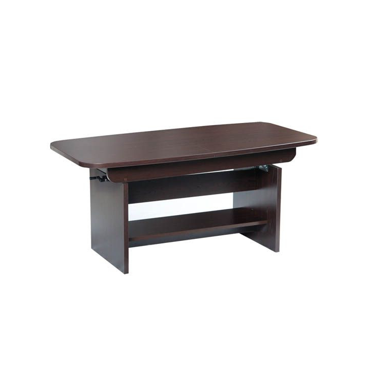 Холна маса с разтегателен и повдигащ се плот с размери на продукта Ш:130-168/Д:70/59-70 см. Масата е здрава и стабилна произведена от ПДЧ в тъмен дървесен декор (Венге), с възможност да разшири трапезната площ от 130 см до 168 см и по този начин да настани удобно от 4 до 6 човека. Много практично плота на модела може да бъде повдигнат до 70 см, и да се използва и като трапезна маса за консумацията на храни и напитки. Практично обзавеждане както за дома така и за офиса.