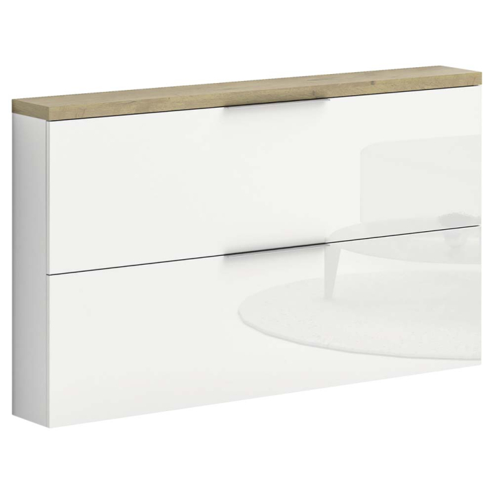 Стенен шкаф за обувки Идеа с 2 врати в бял гланц и дъб артисан, размери: 140/19/82 см