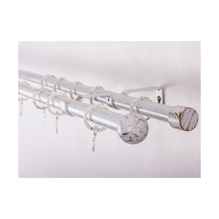 Двоен телескопичен корниз с елегантен дизайн в бяло и златисто, 160-300 см