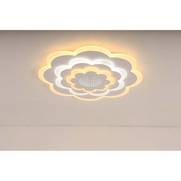 3D LED плафониера светещи цветя 90W, метал и пластмаса, бял цвят, Ф48/5.5 см.
