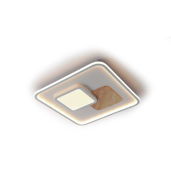 LED плафониера в бяло и дървесно, 99W, 3000K/4000K/6000K, 50/50/5.5 см