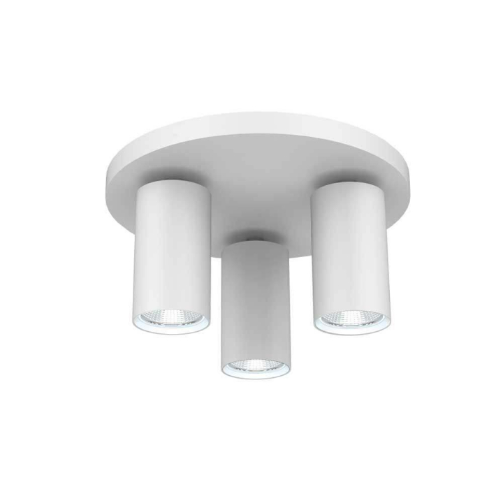 Кръгъл осветител с изчистен дизайн в бял цвят с висококачествена алуминиева изработка. Трите цилиндрични спота са подвижни, което осигурява оптимална осветеност и възможност за нестандартно насочване на светлинния поток. Лампата е подходяща за таванен монтаж във всеки тип интериор - дневна, спалня, офис, заведение.