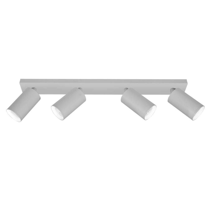 Линеен осветител с изчистен дизайн в бял цвят с висококачествена алуминиева изработка. Четирите цилиндрични спота са подвижни, което осигурява оптимална осветеност и възможност за нестандартно насочване на светлинния поток. Лампата е подходяща за таванен монтаж във всеки тип интериор - дневна, спалня, офис, заведение.