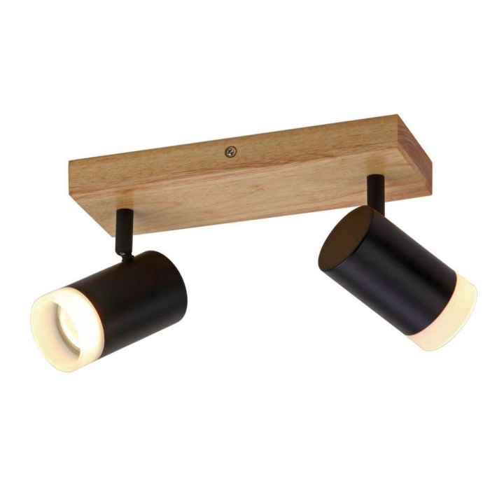 Спот 2х35W, GU10 с дървесна основа и черни метални корпуси с акрилен ринг, 44/6/14 см