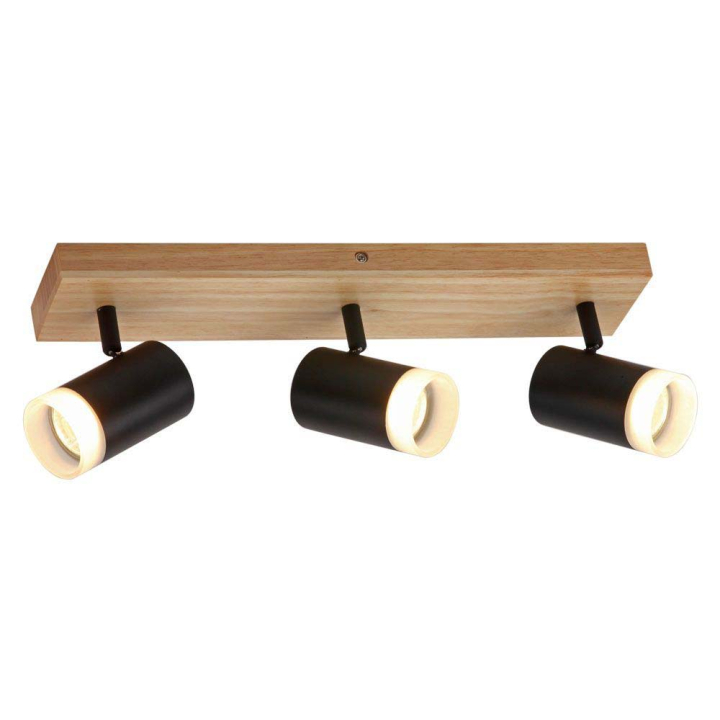 Спот 3х35W, GU10 с дървесна основа и черни метални корпуси с акрилен ринг, 44/6/14 см
