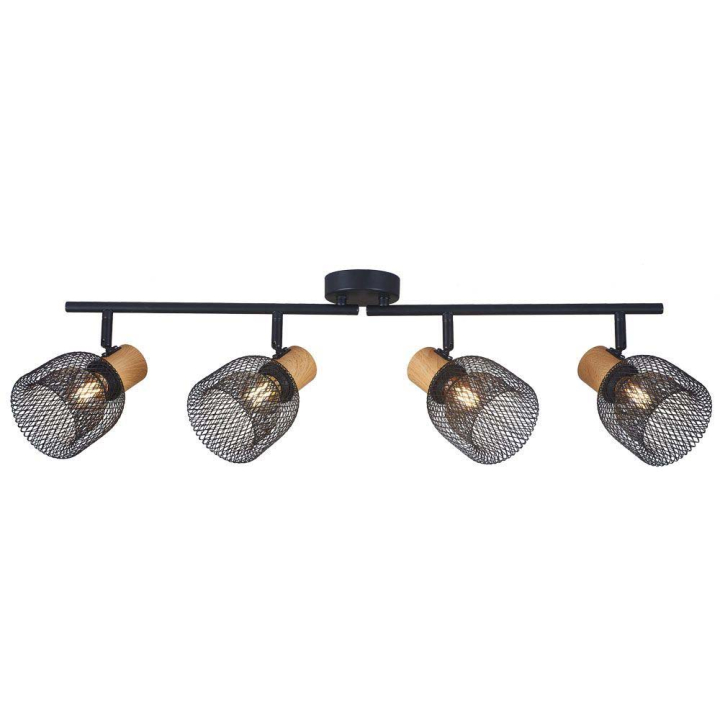 Спотът предлага изискан дизайн, който се вписва идеално във всеки интериор. С черни мрежести абажури и подвижни чашка в дървесен цвят, този източник на светлина е истинският акцент в хола, трапезарията, спалнята, коридора, хотела или заведението. Пригоден е за монтаж на таван.