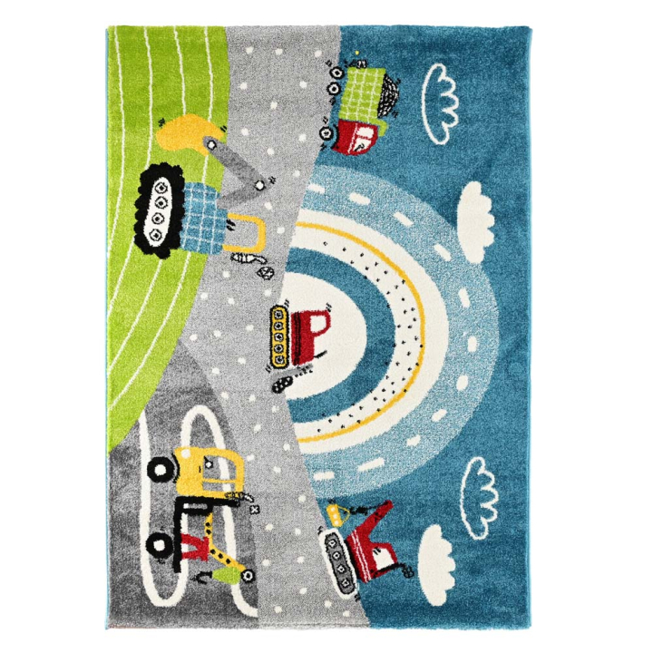 Този пъстър детски килим е идеален за малките почитатели на строителните игри. Забавните илюстрации стимулират въображението и превръщат стаята в истинска площадка за приключения. Килимът е удобен за игра и лесен за поддръжка и се превръща в практичен и забавен акцент за всяка детска стая.